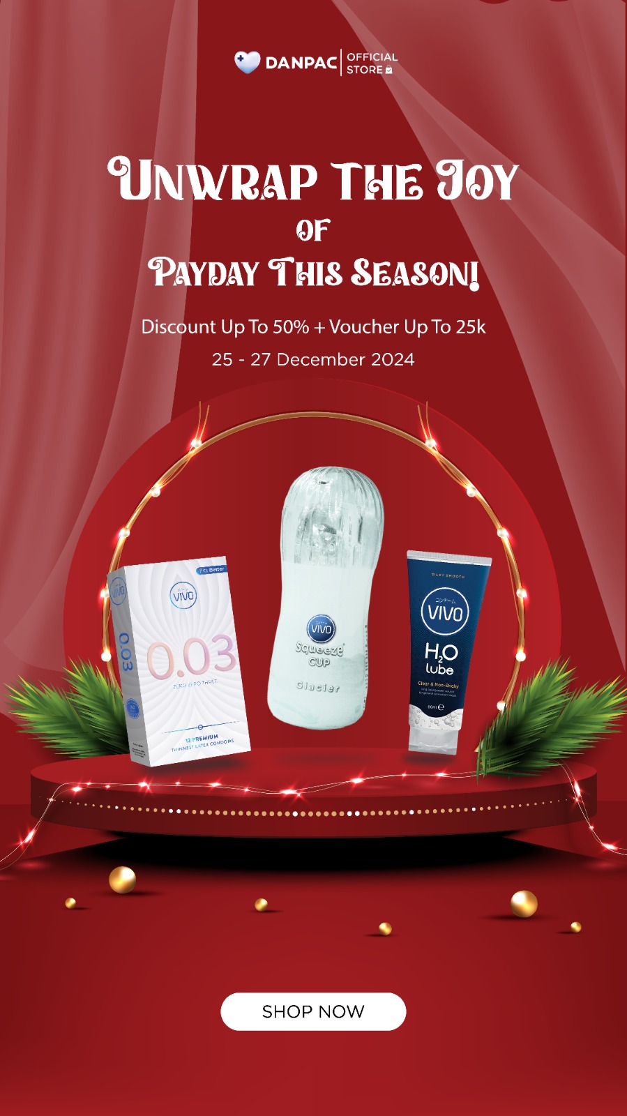 Tolong dibuatkan design banner 12.12 menghighlight product Kondom 0.03 isi 12, Arjoena Maxxx Spray, VIVO H2O Lube Tube